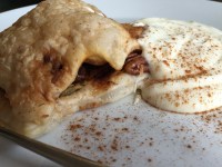 En omdat ik toch nog een gaatje had voor deze lekkertjes, maakte ik mijn kwarkje klaar met mijn eiwitjes en… viste een bladerdeegcreatie van de bakplaat. Hij was al lekker afgekoeld en zag er ondanks de witte pluimen gelikt uit…